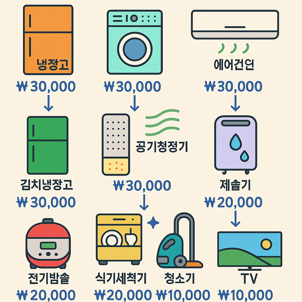 | 세탁기 | 최대 25,000원 | 드럼세탁기 포함 |